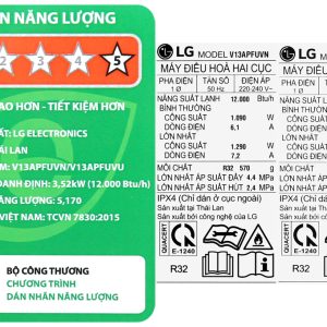 - Nhãn năng lượng: 5 sao (Hiệu suất năng lượng 5,07)