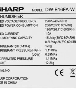 Thân sản phẩm được bao phủ bởi màu trắng tinh nhã nhặn, khu vực lớp cửa thoát khí được phủ màu xanh ngọc giúp sản phẩm thêm phần ấn tượng. Máy lọc không khí Sharp DW-E16FA-W phù hợp với diện tích dưới 38 m2.