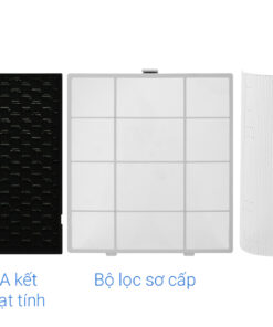 Bộ lọc 3 lớp gồm màng lọc bụi thô – màng lọc than hoạt tính – màng lọc HEPA loại bỏ được phấn hoa, khử mùi không khí, giảm được các loại khí độc hại khác như formaldehyde, xử lý tốt bụi siêu mịn PM0.3, bụi PM1.0, PM2.5.