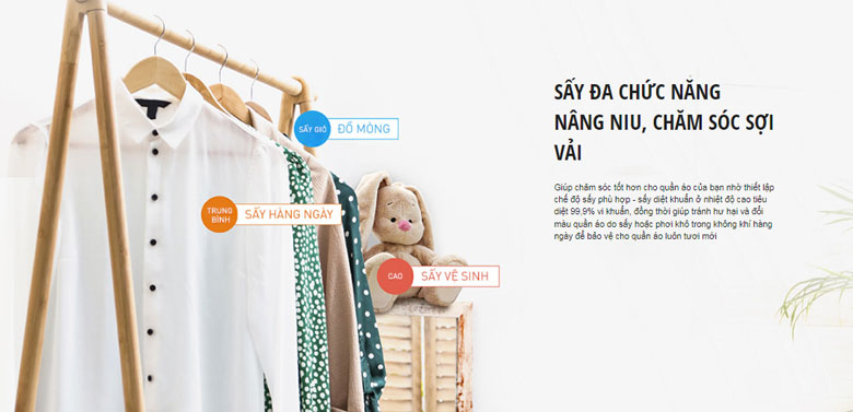 – Sấy phù hợp: quần áo được sấy khô tự nhiên, không gây hư hại và đổi màu