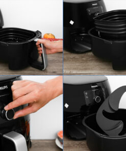 Nồi chiên không dầu Philips có kiểu dáng chắc chắn, màu đen sang trọng, lôi cuốn, vỏ bằng nhựa cao cấp, bền bỉ, kháng vỡ, dễ vệ sinh