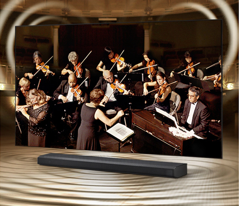 Nâng cao âm thanh vòm với sức mạnh tổng hợp của TV Samsung 55QN700A và soundbar của bạn. Giống như một dàn nhạc giao hưởng, hệ thống đơn giản này hoạt động trong sự hài hòa hoàn hảo bằng cách đồng bộ hóa loa TV và soundbar với nhau. Để phát âm thanh đồng thời từ cả hai thiết bị. Tất cả mà không cần thiết lập phức tạp.