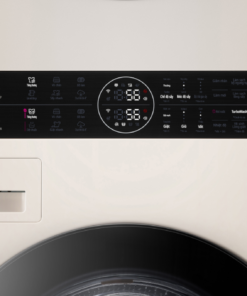 – Bảng điều khiển cảm ứng chỉ dẫn tiếng Việt kết hợp màn hình hiển thị sắc nét, thiết kế trực quan và nằm ngay ở vị trí trung tâm, bố trí cao hơn bảng điều khiển của 2 máy giặt và máy sấy đặt chồng lên nhau đến 85 mm. Nhờ đó người dùng dễ dàng tiếp cận và tùy chỉnh chương trình giặt, sấy linh hoạt.